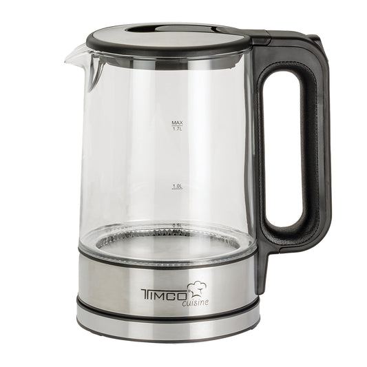 Tetera Jarra Eléctrica de Vidrio 1.7 L Hervidor Agua Acero Inoxidable Timco JE8707