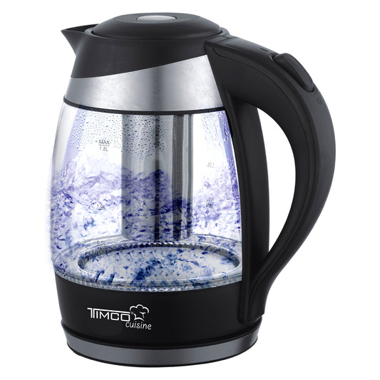Tetera Electrica con Infusor Removible Jarra Electrica de Vidrio para Calentar Agua Capacidad 1.8 litros Timco JE1757T