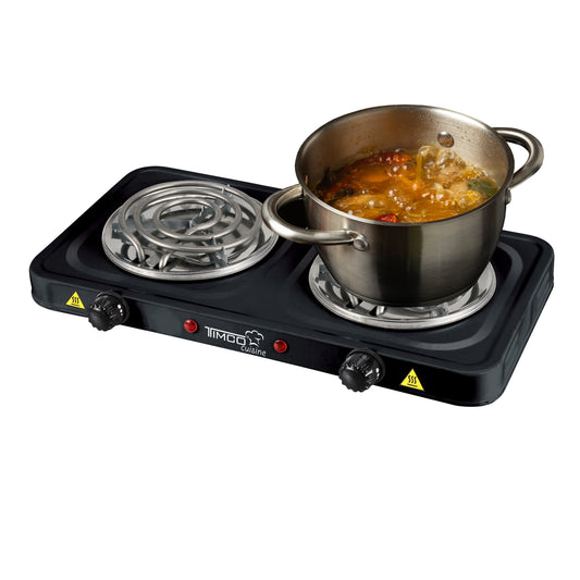 Parrilla Eléctrica 2 Quemadores con Termostato Color Negro Timco PE-02